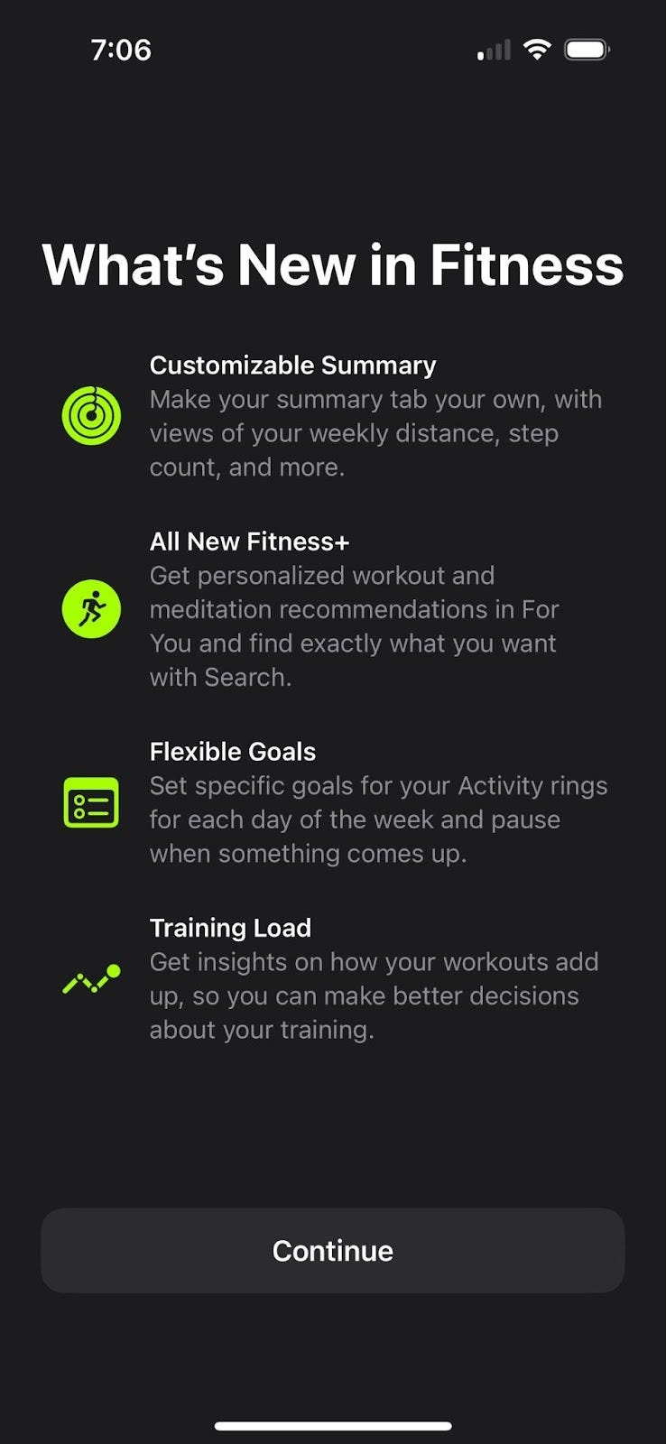 Recently when opening Apple Fitness I was hit with this interstitial promoting new features. This is not an uncommon pattern. An app is updated, presumably with features that solve real customer problems and the team announces the new features.