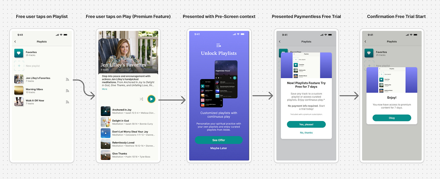 Sort of. For free users, when they hit the playlist feature, instead of showing them a traditional paywall, we let them unlock it by accepting a paymentless free trial.
