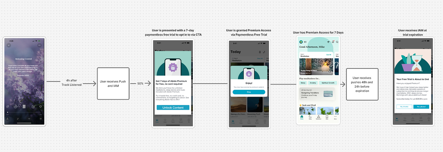 Exactly. It’s about respecting where they are in their journey. In onboarding, they don’t know us yet. At playlists, they’re invested but it’s a narrow use case. But 4 hours after they’ve been using the app and bumping into gates? That’s the sweet spot.